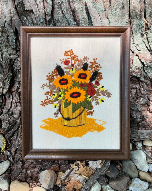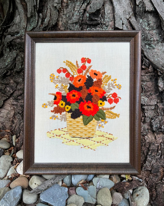 Vintage Crewel: Basket of Orange & Yellow Flowers