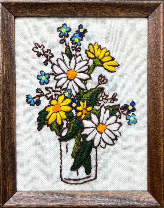 Vintage Crewel: Bouquet of Daisies in Glass Jar