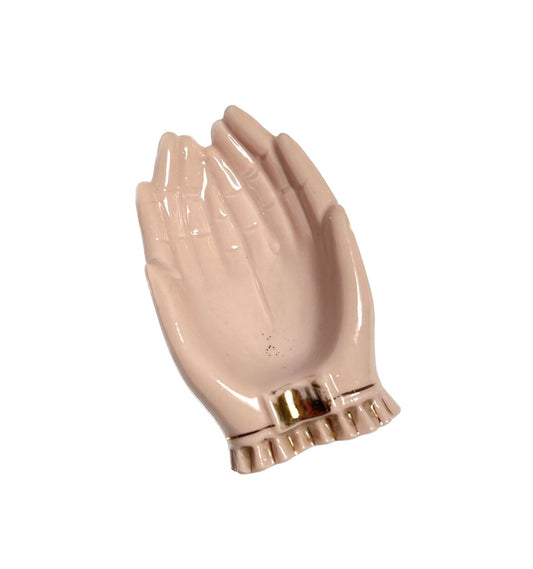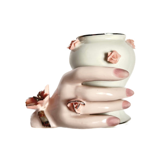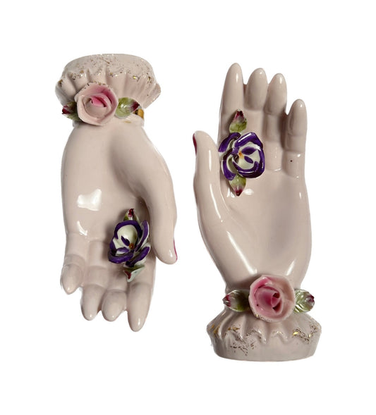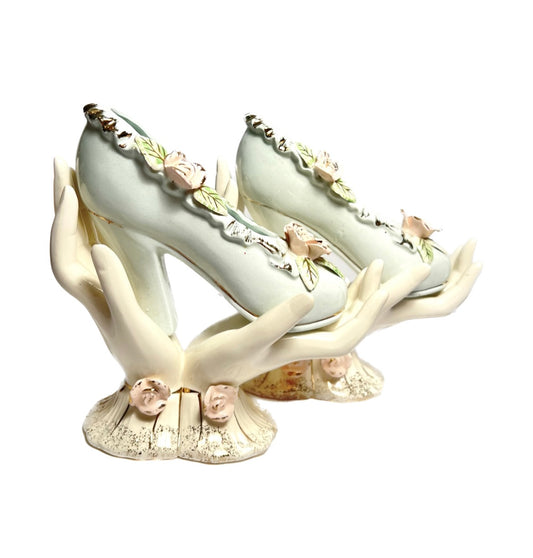 Vintage Porcelain Hands Holding Heeled Shoe with Flowers and Gold Detailing